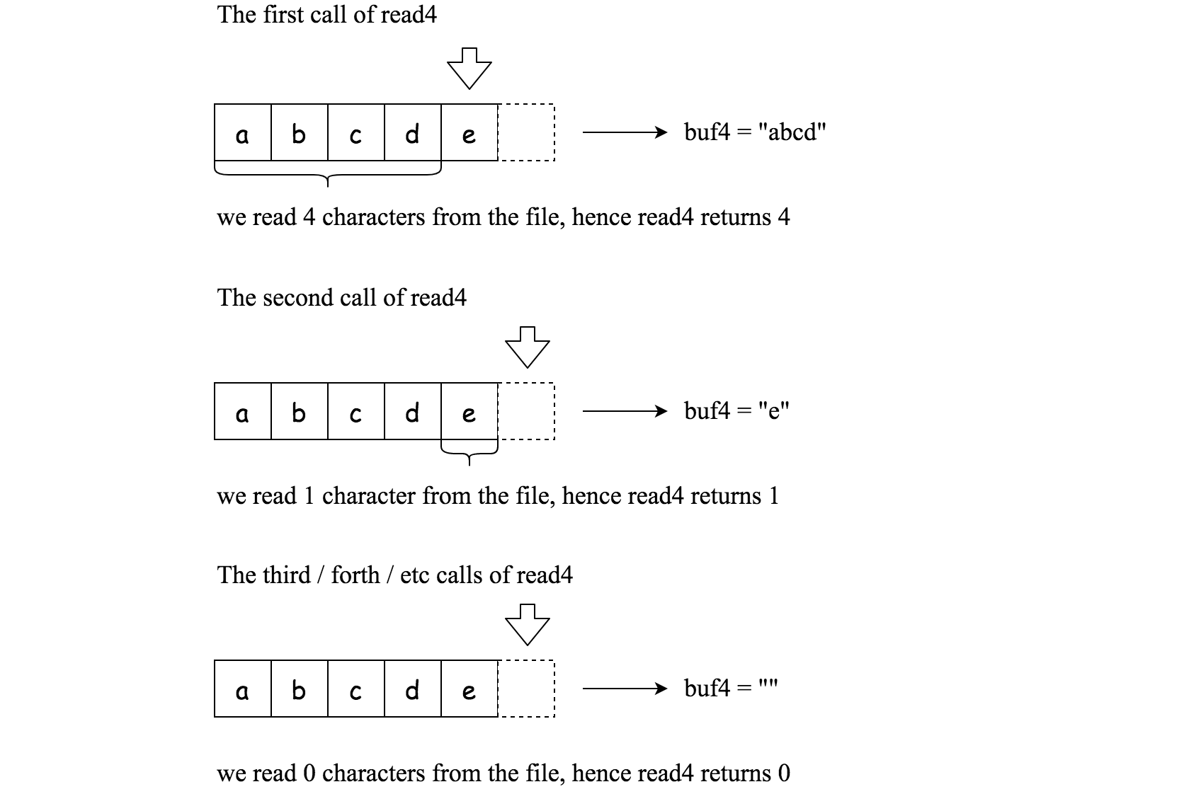 buf4[] is a destination, not a source. The results from read4 will be copied to buf4[].