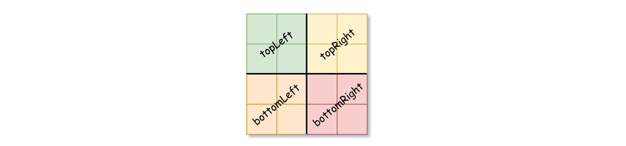 The topRight have different values so we divide it into 4 sub-grids where each has the same value.