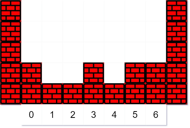 Water first drops at the index k and rests on top of the highest terrain or water at that index. Then, it flows according to the following rules: