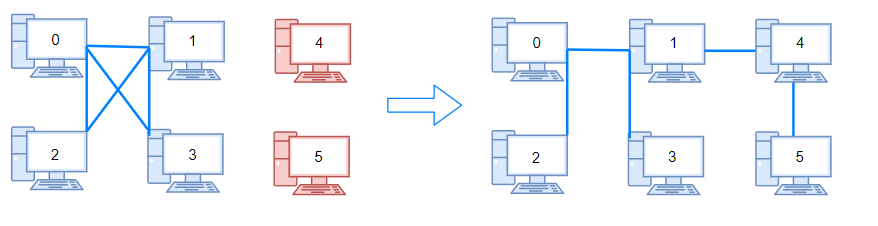 **Explanation:** Remove cable between computer 1 and 2 and place between computers 1 and 3.**Input:** n = 6, connections = [[0,1],[0,2],[0,3],[1,2],[1,3]]