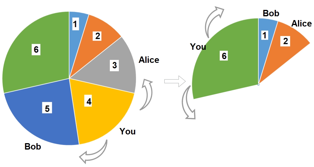 Your friend Alice will pick next slice in anti clockwise direction of your pick.