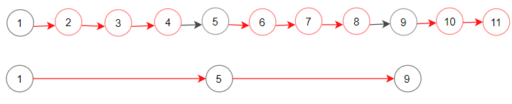 Delete the next (n = 3) nodes (3 -> 4 -> 5) show in read nodes.