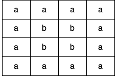 **Input:** grid = [["a","a","a","a"],["a","b","b","a"],["a","b","b","a"],["a","a","a","a"]]