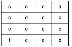 **Input:** grid = [["c","c","c","a"],["c","d","c","c"],["c","c","e","c"],["f","c","c","c"]]