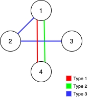 **Input:** n = 4, edges = [[3,1,2],[3,2,3],[1,1,3],[1,2,4],[1,1,2],[2,3,4]]