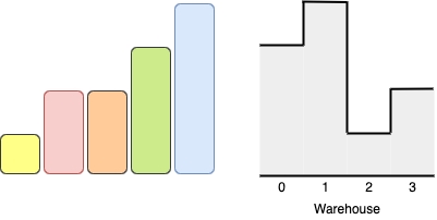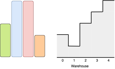 from left to right where warehouse[i]