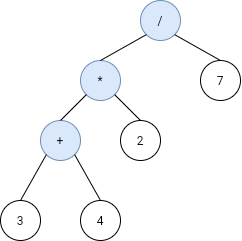 **Explanation:** this expression evaluates to the above binary tree with expression ((3+4)*2)/7) = 14/7 = 2.Example 2: