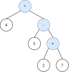 **Explanation:** this expression evaluates to the above binary tree with expression 4*(5-(2+7)) = 4*(-4) = -16.Example 3: