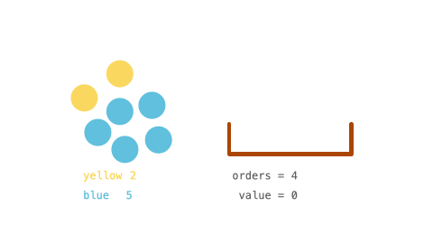 The customer weirdly values the colored balls. Each colored ball's value is the number of balls of that coloryou currently have in your inventory. For example, if you own 6 yellow balls, the customer would pay 6 for the first yellow ball. After the transaction, there are only 5 yellow balls left, so the next yellow ball is then valued at 5 (i.e., the value of the balls decreases as you sell more to the customer).