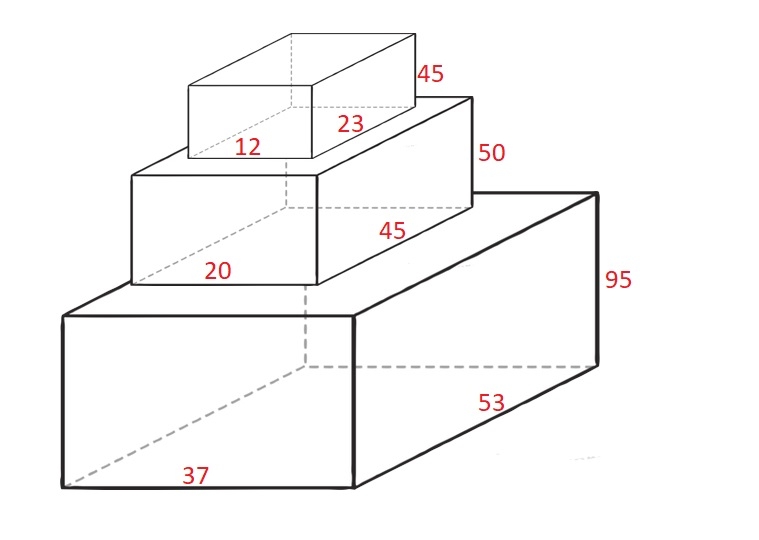 Cuboid 1 is placed on the bottom with the 53x37 side facing down with height 95.