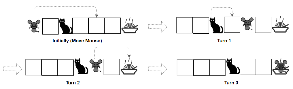 Mouse moves first, then they take turns to move.