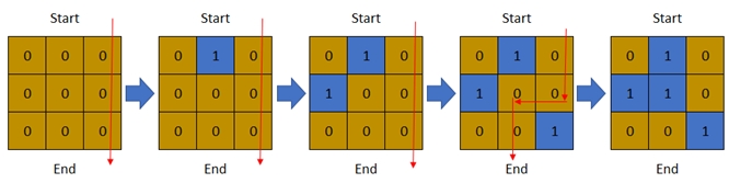 **Explanation:** The above image depicts how the matrix changes each day starting from day 0.