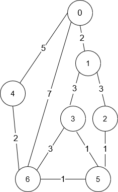 **Explanation:** The shortest amount of time it takes to go from intersection 0 to intersection 6 is 7 minutes.